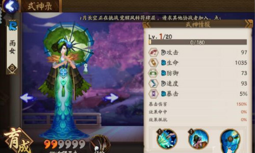 正如前面所说,为了能帮助山兔或者其他式神接触控制,雨女的速度线一定要被拉到最快。2号位无悬念速度属性,至于4、6号位选择生命成长会比较好,毕竟雨女本身并不是很硬。同时虽然还是有眩晕不能免疫,但是整体上最多的控制是阎魔的沉默,所以4号位的效果抵抗没有太大的作用,并不是所有人都会去对付雨女而针对性的配控制。