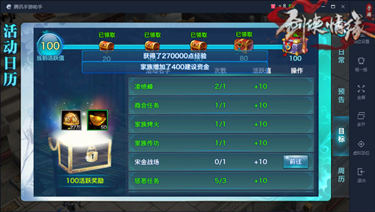 每天活跃必须满100,对于80-89级的少侠来说,每个目标27W经验,一共135W经验。
