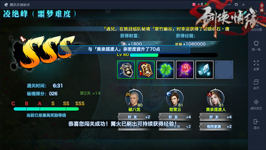 翠竹幽谷与凌绝峰每天各二次,每次SSS得108W经验,通关后,烤火可得25W左右的经验,4次约可得530W经验。