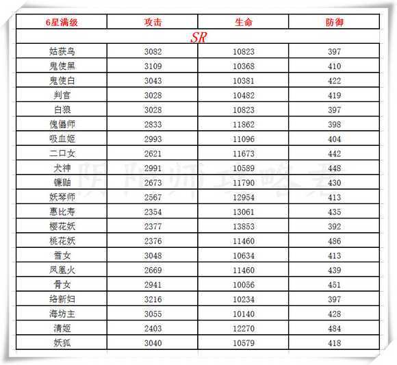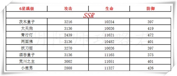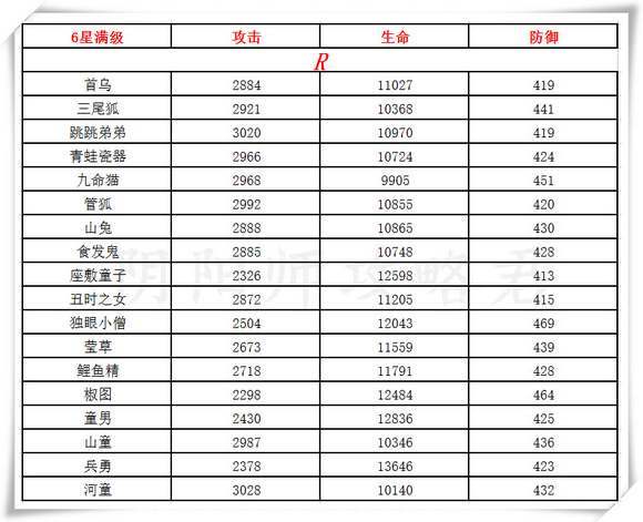 以上数据仅供参考,并不是说明了谁强谁弱。更重要的还是要根据式神的特点组建合适的阵容才能发挥到最大的威力。不过要想升级一个六星式神实在太难了~