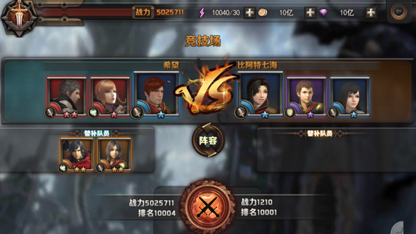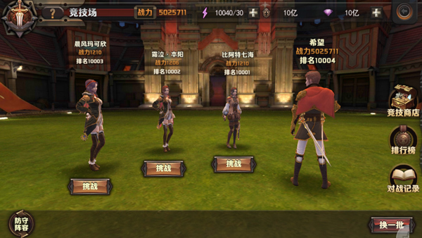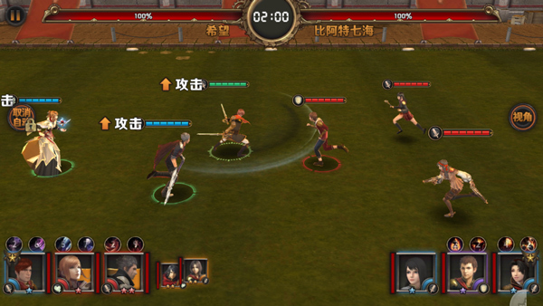 2、对战采用车轮战模式,先上三名英雄,有英雄阵亡时依次上常剩余两名英雄,直至一方英雄全部阵亡或达到挑战时限。战斗过程中所有技能均为自动释放,仅能调整战斗速度和视角。