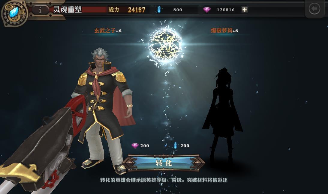 当玩家等级达到60级以后,就可以获得重塑英雄灵魂的能力,从而将队伍中多余的英雄转化为玩家需要的英雄 玩法规则: 1、橙色英雄可以重塑为其他同为橙色的英雄。重塑过程中的消耗与英雄的资质相关,被重塑英..