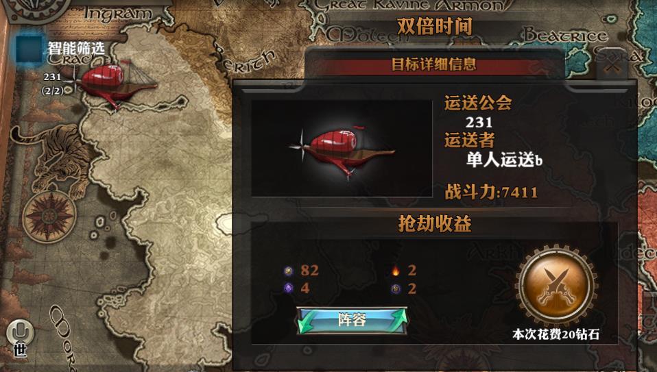 3、玩家可以选择自己运送水晶,也可以与公会内玩家组队运送。当遇到其他玩家的抢劫时,队伍中战力最高的玩家出战