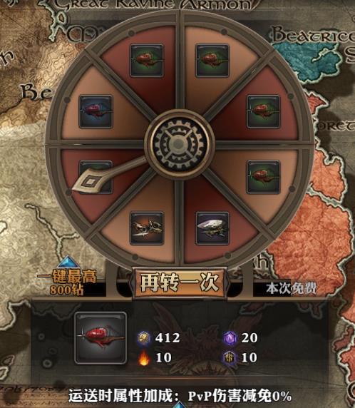 2、玩家可以通过转盘刷新运送飞艇的品质,除第一次外,每次启动转盘需要消耗一定钻石。飞空艇的品质依次有白、绿、蓝、紫、橙。当玩家转到某种品质的飞艇时,转盘中的所有扇区都会刷新出大于等于该品质的飞艇。