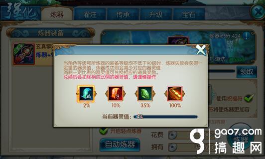 当角色等级和所炼器的装备等级均不低于90级时,炼器失败会获得相应器灵值,炼器成功则会减少一定器灵值。
