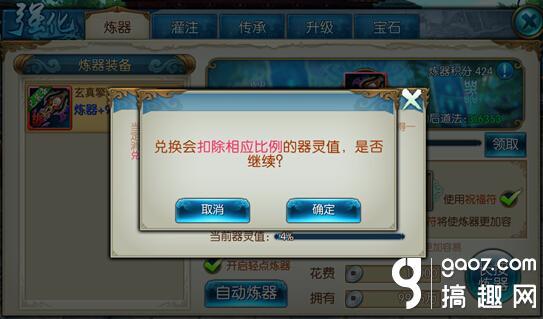 兑换后会扣除相应比例的器灵值,请谨慎操作。