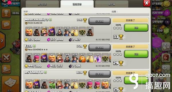 单从成本上看,大概矿工打一把,哥布林可以打两把。那么哥布林打两把能不能打到矿工一把的资源呢,从上面的图我们可以看到哥布林打一把有双15万金水,2000黑的样子,相对比矿工流的双37万,2000黑,论打黑能力的确哥布林强一点,但论打金水,矿工流完胜哥布林流。而且大家别忘记了,你打3到4次就要被别人打1次,把被打的损失也算进去的话,矿工流单次进攻收益要远大于哥布林流。