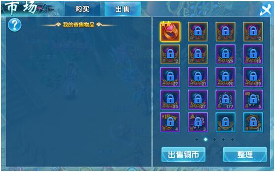 出售:玩家可以在这里出售自己的非绑定物品,以及查看已出售的物品信息