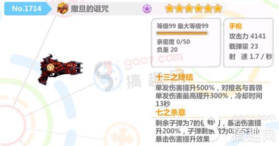 一技能CD长达13秒,不过切为其他武器时仍会走CD。500%的伤害倍率加上手炮中一等一的面板,撒旦的基础伤害十分恐怖。面对橙名与BOSS时伤害倍率会降低至300%,但仍然很高。
