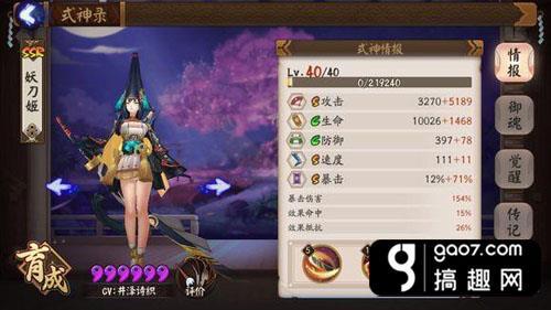 妖刀姬使用太刀攻击目标,造成攻击100%的伤害,满技能后达到攻击的120%