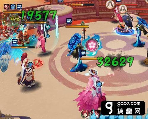 樱花妖对敌方全体造成伤害,驱散所有增益效果,并且附加一个持续2回合的50%减疗。