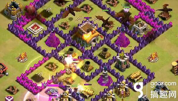 八本狂暴龙流和七本类似,可以带一个毒药对付援军,其他相同,不再赘述;闪震龙流,需要闪电达到5级!2闪电1地震可以干掉一个六级防空;急速主要是辅助气球,降低操控难度,若气球节奏掌握的好换成其他暗黑法术也未尝不可;闪震龙流比狂暴龙流适用性更强,但各有所长,可根据阵选择打法;防空有两个挨着时,请用专门的套路!