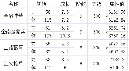 成长值: 由此表可以很清晰的看出,金色系列,不管是装备,士兵,还是武将,成长值都远远高于其进阶前的水平。金武将配上金装和金兵更是牛逼哄哄,你看,都能达到40000以上的属性,还只是0阶的水平。..
