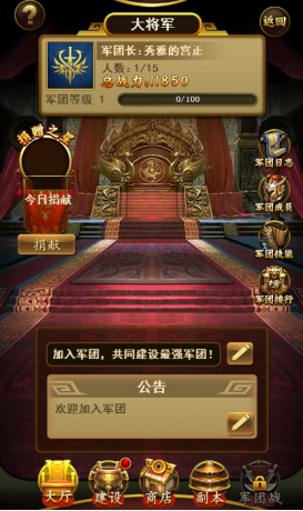 军团主要包括军团建设、军团商店、军团副本、军团技能等~