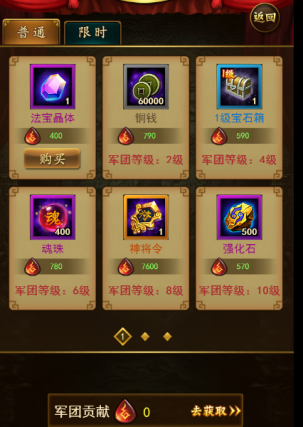 军团贡献可以在军团商店界面兑换您所需的物品或升级军团技能。