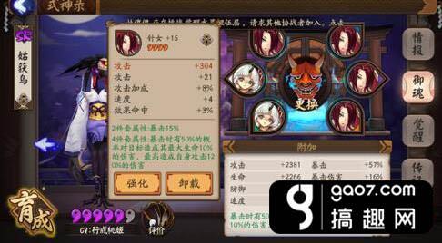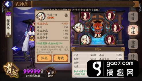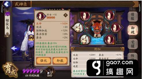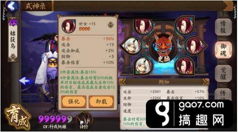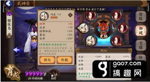 想让自己的鸟达到极致成为一只凤凰,营养师们可要努力肝星期四的针女了,起手4属性的御魂如果主属性对了,副属性有两条以上在前四重要属性里,那就可以拿来强化了,然后看脸。