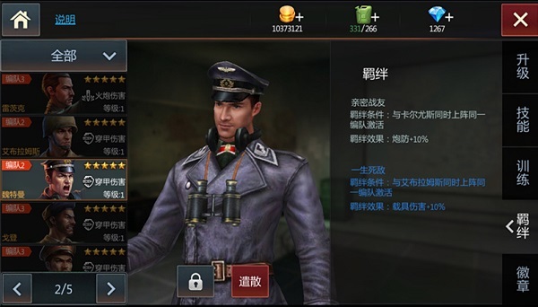 出战车长(四星/五星车长)之间存在战将羁绊关系,合理搭配出战车长,可进一步增强坦克战力。同时上阵车长满足羁绊条件时,车长界面战将羁绊字体会变成蓝色,同时满足每一项羁绊条件字体也会变成蓝色,同时相应属性百分比提升。羁绊关系可点击车长查看。