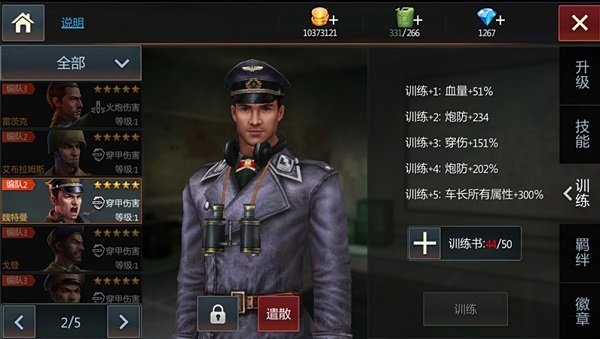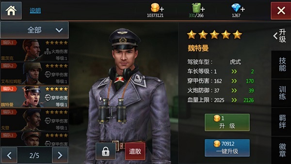 当角色等级提升后不要忘记对车长进行升级,点击“升级”或“一键升级”对车长等级进行升级,大幅度提升车长基本属性。