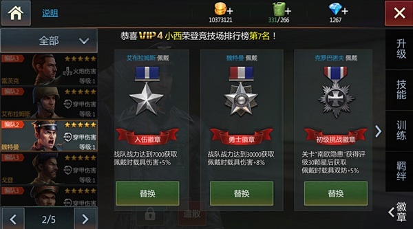 车长图片界面有勋章按钮可以选择佩戴勋章。不同的勋章对车长的属性提升不同,已获得的徽章和徽章获取途径可在任务的界面内查看。