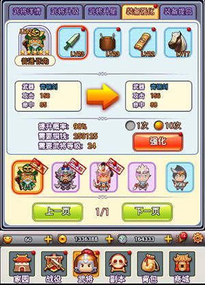 铜钱在武将升星、装备强化以及提品中扮演重要角色,另外在阵法升级中除了阵法石,也需要大量铜钱。