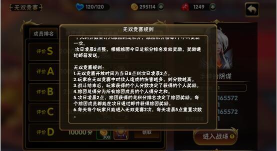 6、每天每个玩家只能进入无双竞赛2次,每天凌晨5点重置次数。
