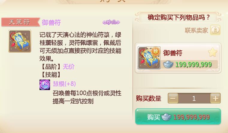 2) 根据品质的不同,天策符分为把玩、珍藏、无价,无价品质可交易,多余天策符可分解变为帮派成就;