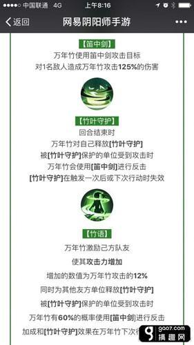 三技能【竹语】稳定给全体上竹叶守护,这就代表他要开秀了,不过满技能60%的概率命中秀不秀略看脸,而对面如果是AOE的话,就会很有效(注意多段伤害是按照一段计算,即一次出手攻击)。