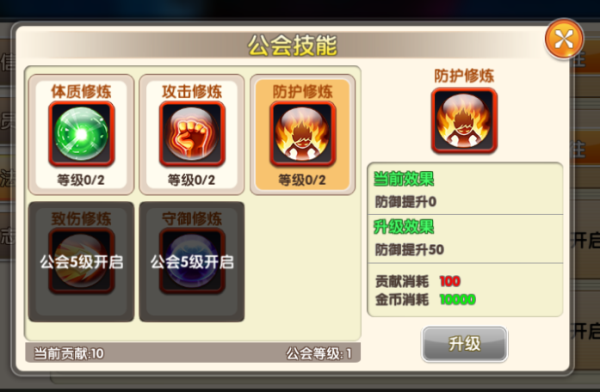 公会技能可以增加全部公会成员的属性,但是需要消耗贡献和金币,高等级的公会技能需要公会达到5级后才能开启。