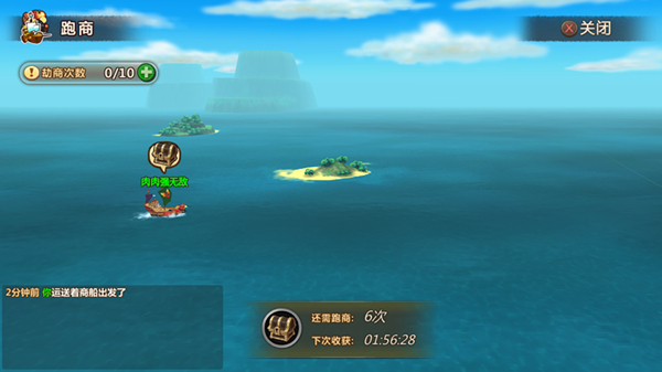 开始跑商后,我们就能看到自己的小船静静的行驶在海面上……非常Q~。而两小时后,就可以等待收货跑商的成果啦~!科科!