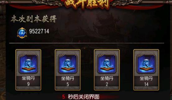 其次是坐骑副本,玩家可以通过每天日常来进入坐骑副本,完成任务后,会有四张牌供您选择,里面的坐骑丹数量有多又少,看你自己运气,是否抽到多的那一张啦~