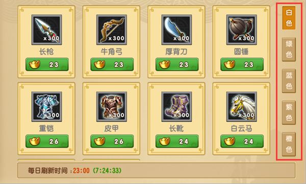 共拥有100多种军械,兵种品质越高,提升品质所需的军械品质也越高;