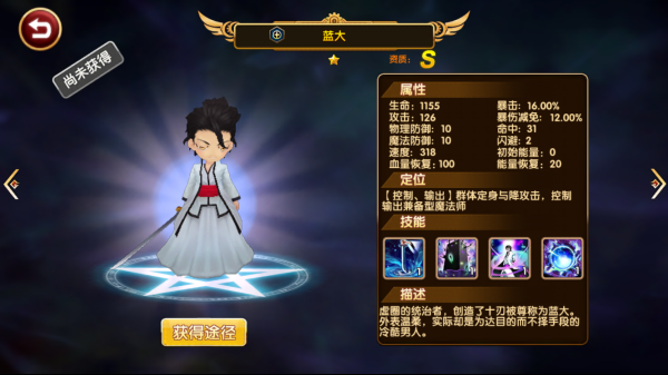 《全明星大乱斗》S级辅助之蓝大,虚圈的统治者,创造了十刃被尊称为蓝大。外表温柔,实际却是为达目的而不择手段的冷酷男人。