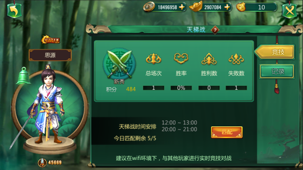 l 玩家初始500积分,实时匹配积分相近的对手,战斗胜利获得天梯积分,失败则扣除积分;