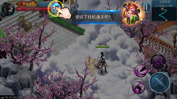 在技能升级完毕后,听说了蟠桃园的桃子被偷了,这种锄(diao)强(da)扶(cai)弱(ji)的活,小编可是义不容辞的。而进入副本后,小编就学会了自动战斗的新技能啦,这样就可以解放双手了!