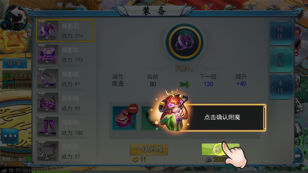 在解决了蟠桃园的问题后,小编从一个箱子中发现了一个更漂亮的仙子,这名漂漂的仙子手把手教导了如何进行装备的附魔。看来小编的战力进一步提升了!