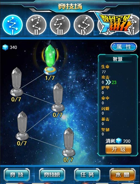 竞技获得的水晶可以在下方的水晶进行消耗,来增加数码宝贝的各项属性,当然这是一个日积月累的事情呐。