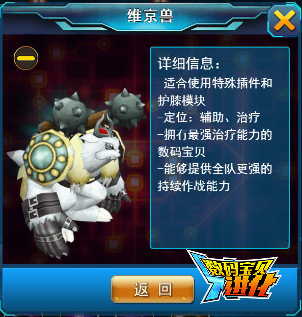 点击数码怪兽的图标查看详情还可以查看到 当前数码怪兽的一些详细资料,可以让冒险者们决定之后进化的方向。