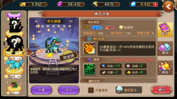 那么有同学就要问了:“老师老师,那些先攻流精灵可以成为建队核心?“,老师我筛选精灵是这样的:伤害>BUFF>属性加成,别问为什么,任性。。。