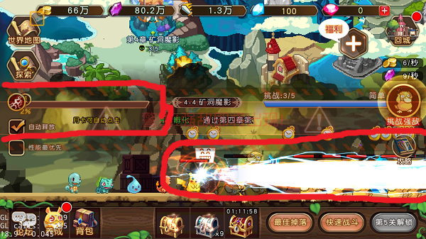 不仅如此呢,冒险界面上还有一些人性化的设定,比如这个虚狗炮,选择好释放时间能减少不少BOSS刷新CD。