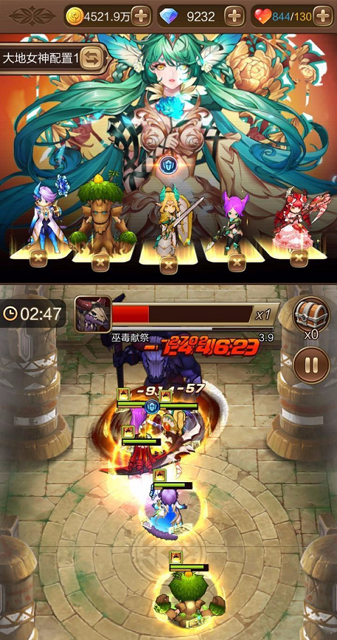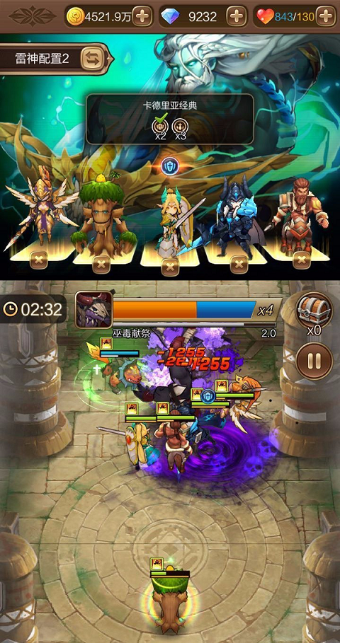 卡德里亚经典依然是此版本中最普及的组合,要战胜boss阿特兹,女王与大树两个亲民英雄几乎是首选。冰王子的复活技就不必说了,这里说一下瘟疫公主莉塔,作为冷门英雄的她绝技是变成暴君,生命上限提高、减伤、伤害转治疗,这都大大地提高了她的生存力。莉塔攻击力不弱,基本可以在确保输出的情况下撑到击败boss。剩下一个输出可以任意选,但选有吸血治疗技能的刺客卡特琳娜可确保3星通关。另外大地女神可确保增益、治疗效果。
