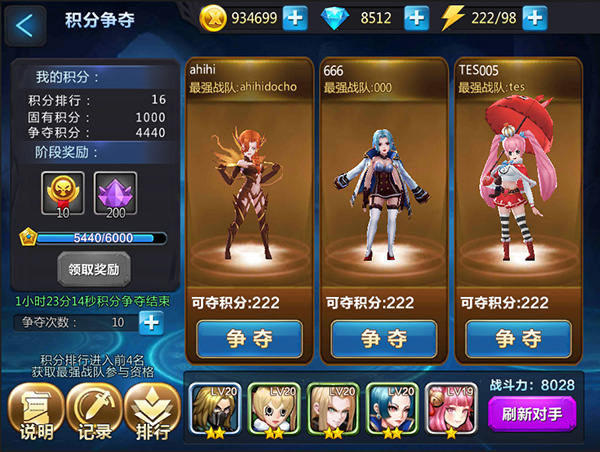 召唤师加入战队后,即可参与积分争夺玩法,通过和其他战队的成员战斗获得积分,也可以通过复仇的方式夺回被抢的积分。当召唤师拥有的积分达到一定要求,即可获得奖励。