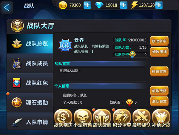 召唤师可以搜索和申请加入心仪的战队,也可以花费300钻石创建战队。