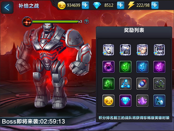 每天19:30开启补给之战,活动持续30分钟。挑战BOSS分为3个阶段,第一阶段:积分=伤害;第二阶段:积分=伤害X2;第三阶段:积分=伤害X3,除了挑战BOSS之外,还可以通过抢夺其他召唤师获得。