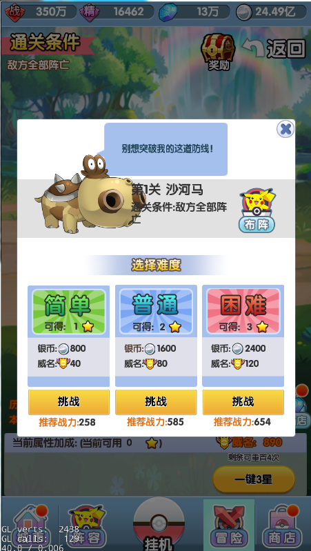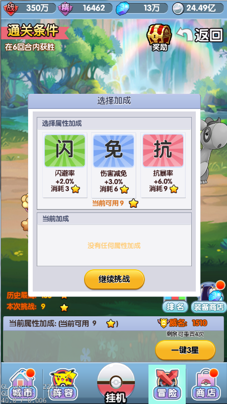 在挑战副本时我们会发现,每一个副本都会有3种难度供玩家进行选择,不同难度对应不同星数且含有推荐战斗力,对没错,这里的星数即使选择Buff加成时可以消耗的星数。而且不同组的副本通关条件也并不相同,并不是所有副本战斗胜利就算通关的。