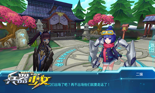 在进入游戏后《兵器少女》带给笔者的第一印象,就是清新明亮。蓝色和绿色为游戏场景背景的主色调,色彩清新斑斓,给人以轻松舒适感。二次元的少女人物十分有爱,让人有继续下去的冲动。然而,真正让笔者沉迷的是,《兵器少女》的剧情弹幕体验,这才是让人第一次开始上瘾的“毒药”。