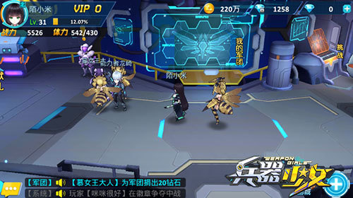 《兵器少女》将玩家划分为了三大战区势力:北部战区、南部战区和东部战区(为什么就没有西部战区呢?)势力既分,那就开干!军团大战是游戏中最大最具特色的团队PVP玩法。在战前,军团每一位成员还可以自选为自己增加一个增益BUFF,这样的玩法设定机制也让团战更加充满悬念,以弱胜强的好戏成为现实。