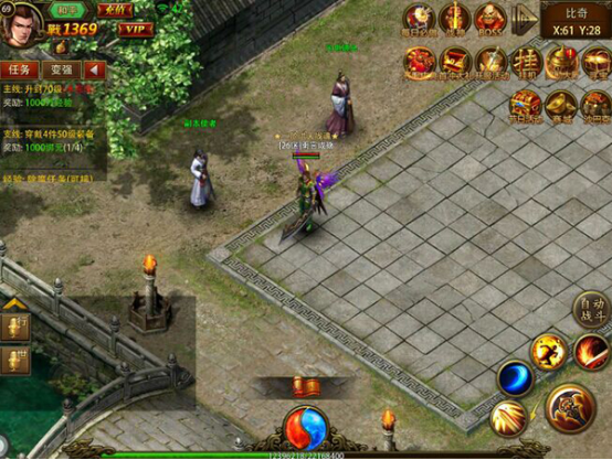游戏会引导你去做除魔任务,一天能做12次,可以花费1w的铜币去刷新星级,越高星级奖励就越高,完成任务后可以使用绑金60w领取三倍奖励