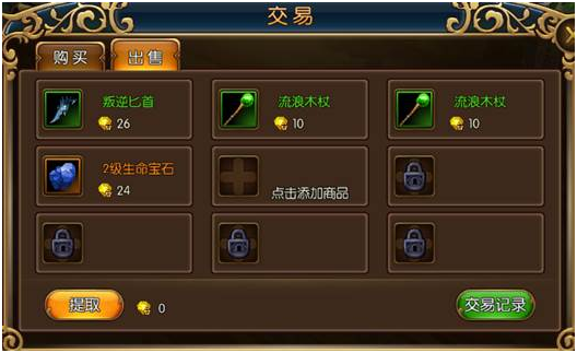 1. 玩家可以在游戏主界面菜单栏中点击“交易所”按钮弹出交易所界面,在交易所点击“购买”或“出售”按钮分别切换对应界面。