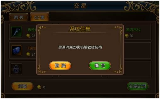 4. 上架道具需要交纳一定的手续费。卖出道具后可获得绑定钻石。