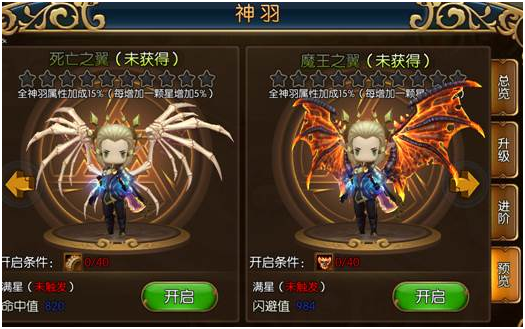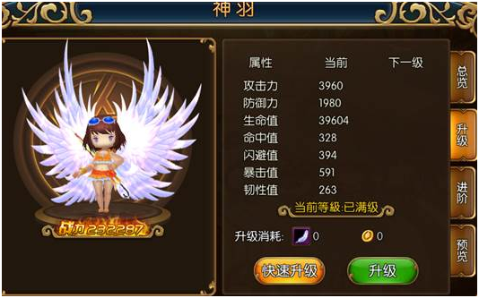 3. 升级神羽是神羽培养的基本方式,使用道具“升级之羽”和金币可以提升当前神羽的等级。